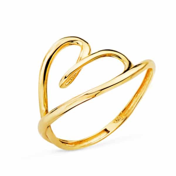 SORTIJA DE ORO DE LEY 18 KT. MODELO CORAZON CRUZADO